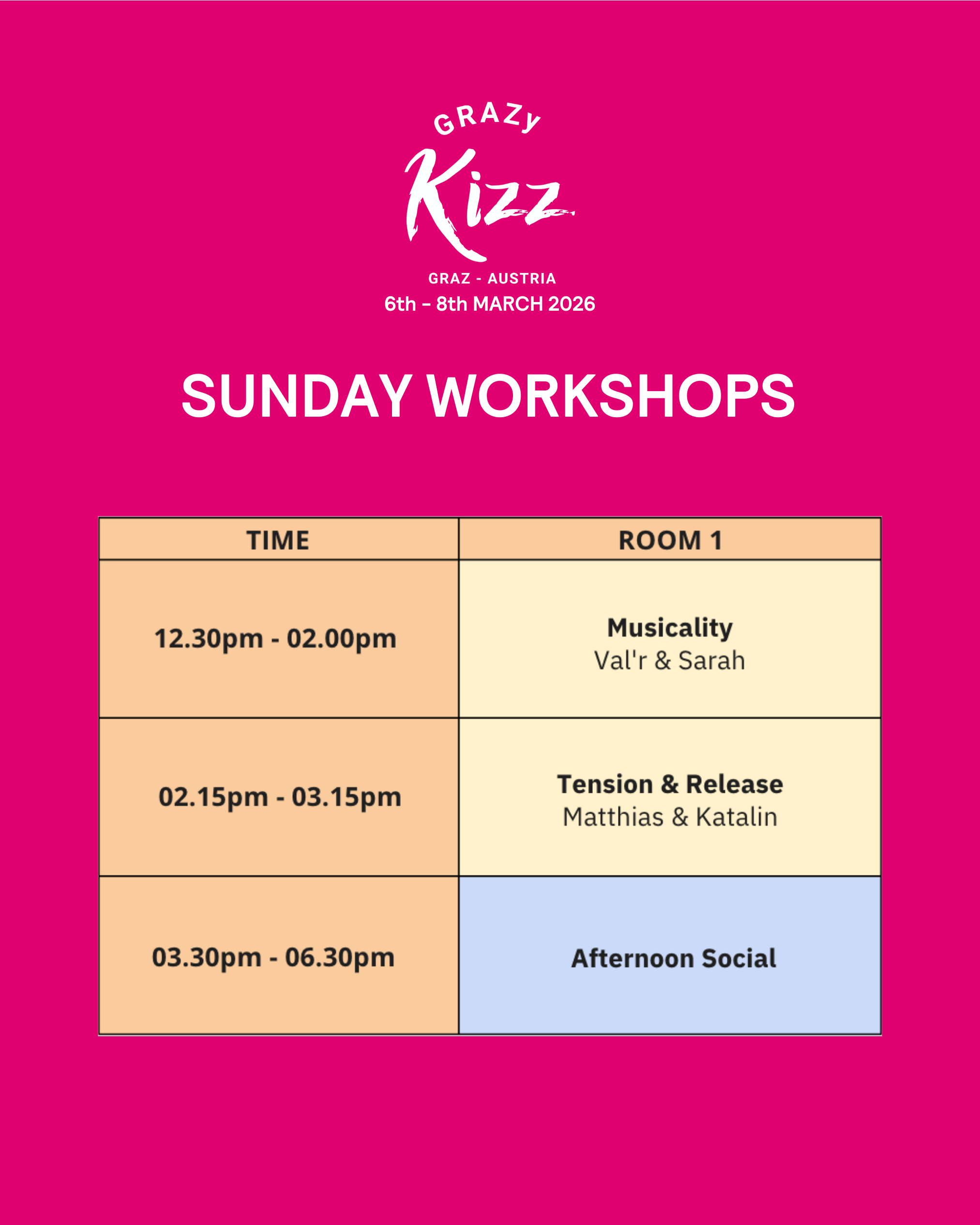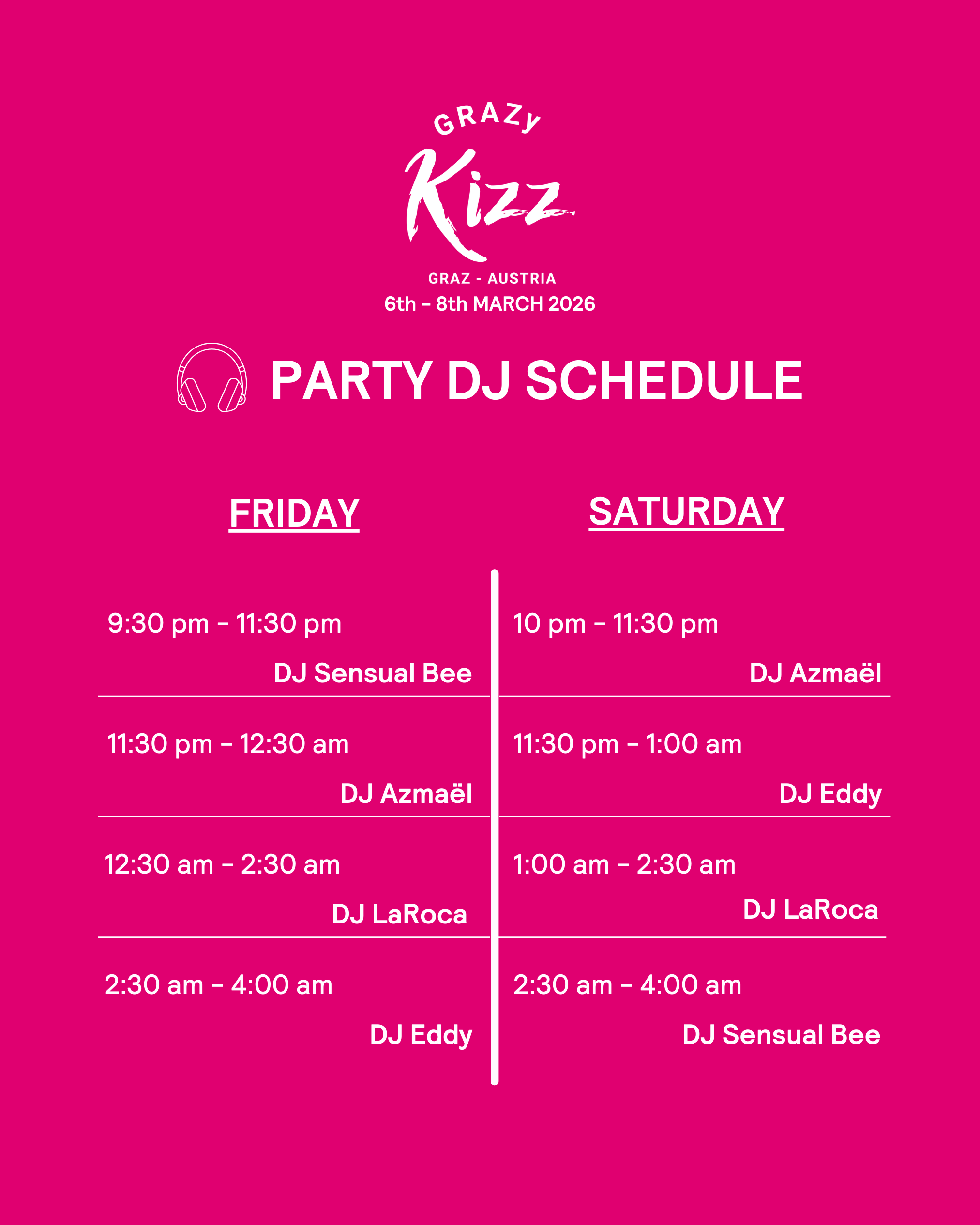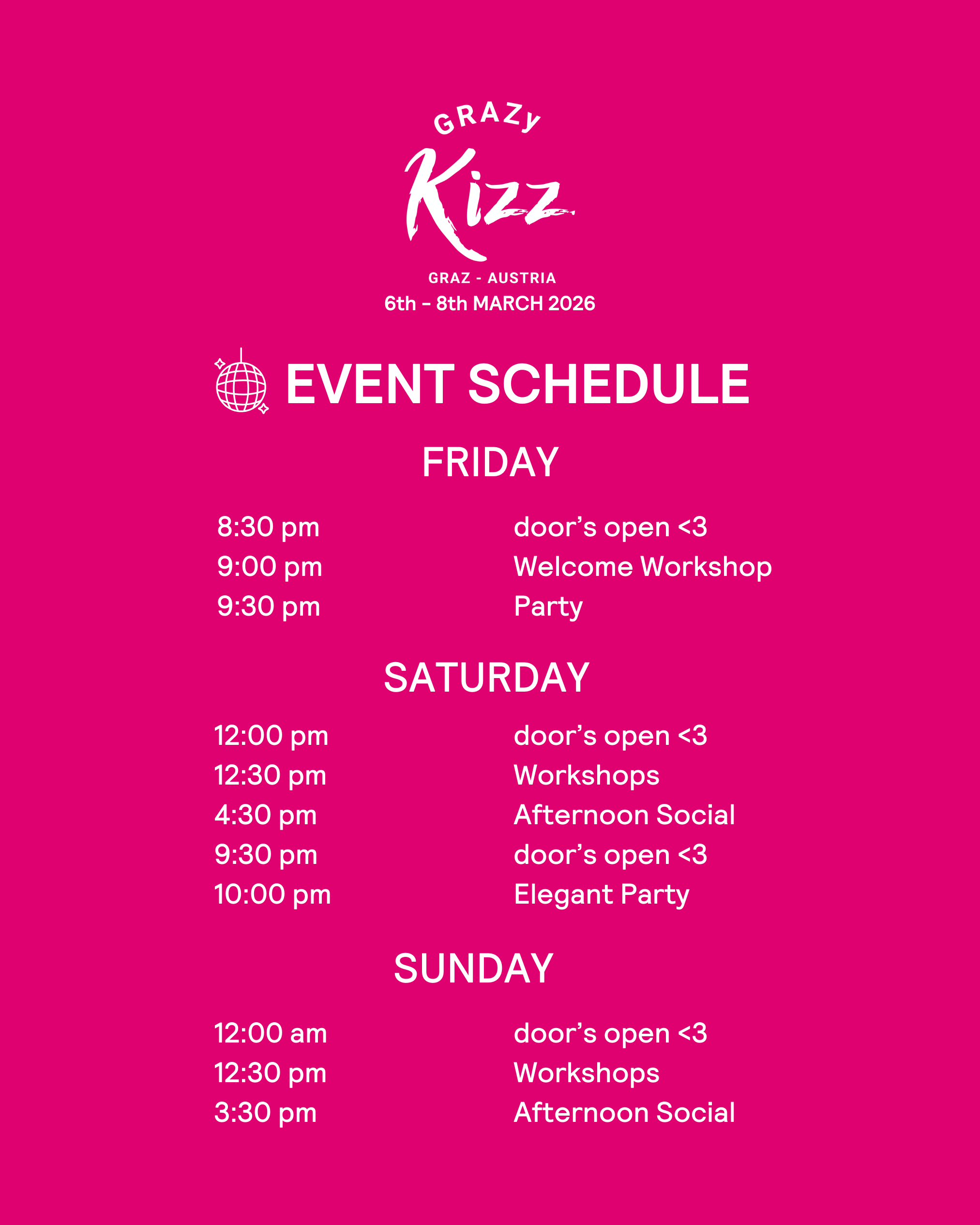 Our GRAZy Kizz Weekend is a captivating dance experience in the middle of Graz, providing a unique merge of african and european sensations.